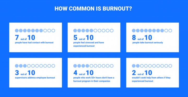 Burnout is fairly common, with 7 out of 10 employees having suffered at least some form of burnout.