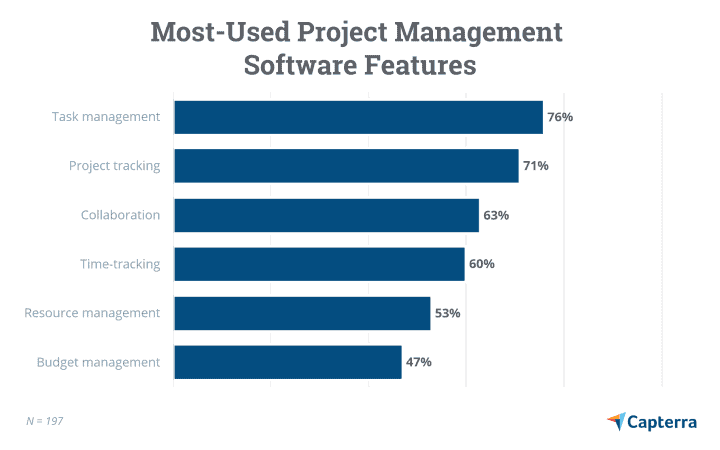 According to Capterra, task management and project tracking are the most used features in project tools.
