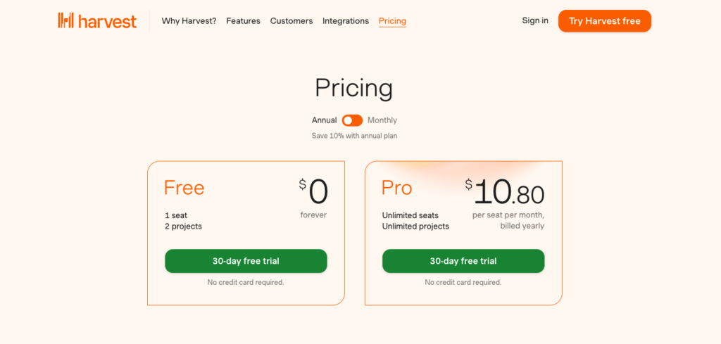 - Starter: $10/user/month for small teams needing additional tracking and billing features.