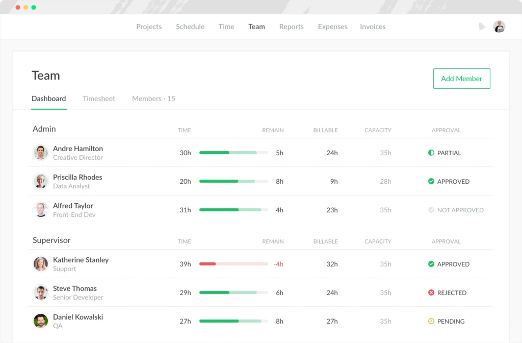 - Ensure projects stay on track and assign work appropriately without overloading team members using Clockify’s insights on employee bandwidth.