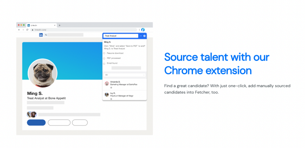 • Fetcher: This is a time-saving candidate sourcing tool with AI-generated recommendations and automation. It streamlines recruitment by integrating with HR technologies and improving the hiring decision process.