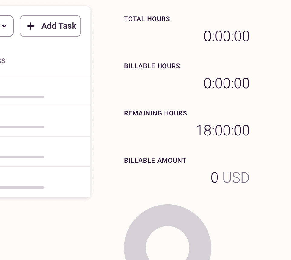 Adding estimates for each task will automatically calculate your total project time estimate (remaining hours).