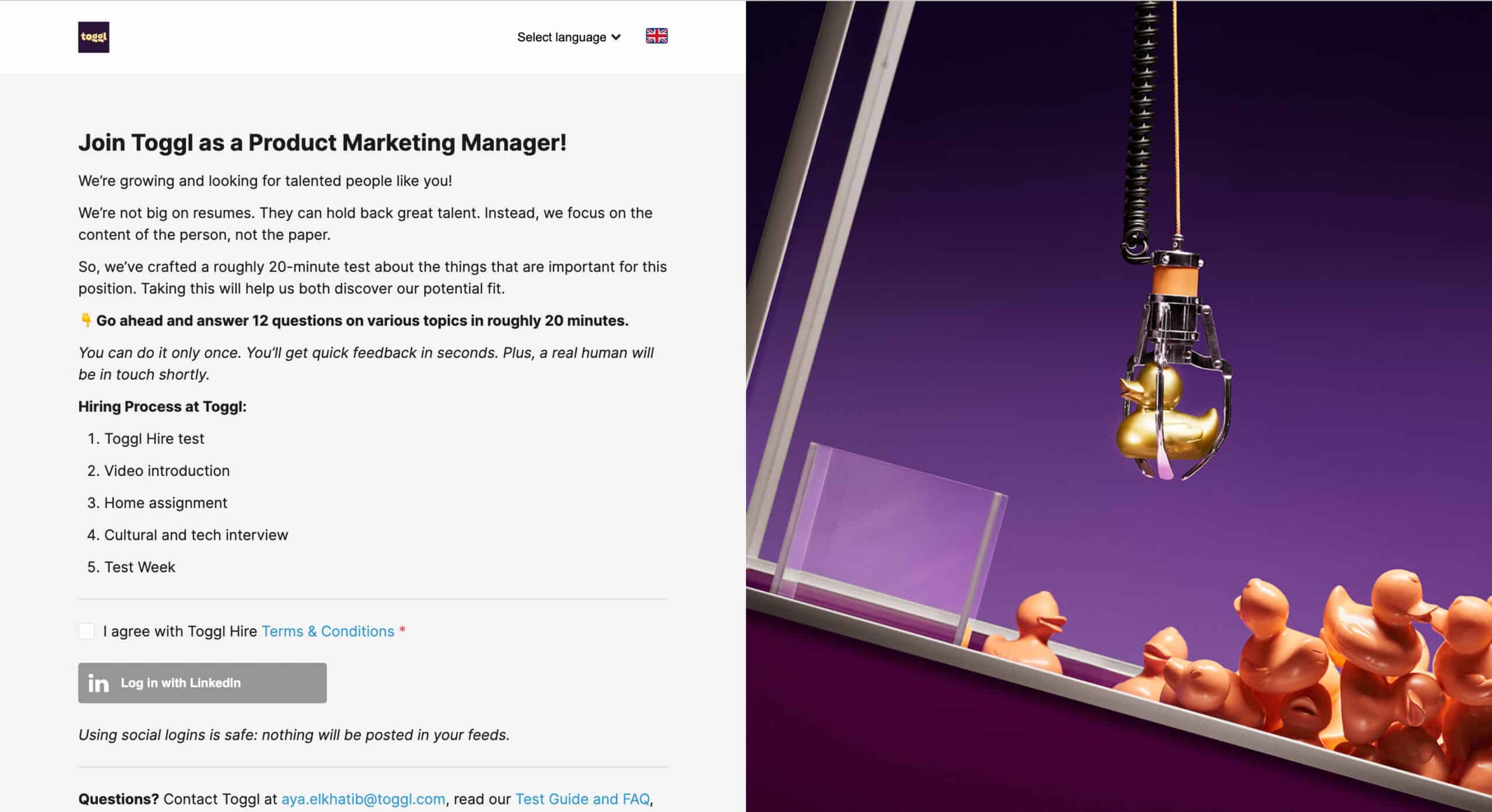 - Once you’ve hooked prospective candidates, Toggl Hire’s skills assessment platform can help you sift out the best from the rest! Gamifying your job application process is another way to streamline recruiting and maintain an engaging candidate experience.